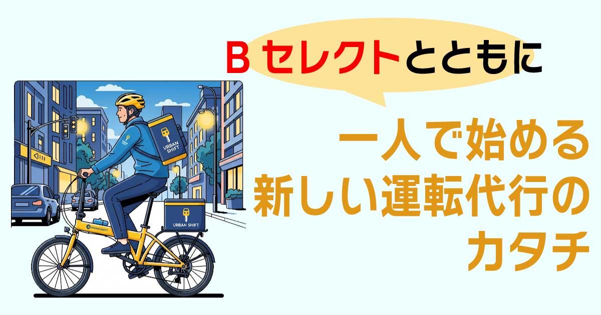 デリバリーも運転代行もひとつのアプリで地域の生活を支える デリバリーも、運転代行も、ひとつのアプリで地域の生活を支える。 Bセレクトでできること Bセレクトとは アプリの使い方 地方を活性化 アプリのDL その他提供サービス Bセレクトでできること Bセレクトとは アプリの使い方 地方を活性化 アプリのDL その他提供サービス News 2025年10月31日 1人運転代行(運転請負)とは?Bセレクトが提案する新しい働き方 2025年8月5日 【移動の常識を変える】Bセレクトを支える電動バイク「DiBlasi R70」の魅力とは? 2025年10月31日 1人運転代行(運転請負)とは?Bセレクトが提案する新しい働き方 2025年8月5日 【移動の常識を変える】Bセレクトを支える電動バイク「DiBlasi R70」の魅力とは? ✕ ✕ News でできること ドライバーとして働く 商品や料理を注文して 届けてもらう 車の運転代行・運転請負を依頼する 加盟店に登録して、 商品や料理を運んでもらう でできること ドライバーとして働く 商品や料理を注文して届けてもらう 車の運転代行・請負を依頼する 加盟店に登録して、 商品や料理を運んでもらう アプリ「Bセレクト」について Bセレクトってなに? アプリ「Bセレクト」について Bセレクトってなに? Bセレクトは折り畳み電動バイクを主力に、「運ぶ」に特化した統合サービスです。 Bセレクトは折り畳み電動バイクを主力に、「運ぶ」に特化した統合サービスです 配車・配送プラットフォームとして、提携ドライバーがさまざまなユーザーにデリバリーや運転代行など、「運ぶサービス」をご提供します。「あの店の料理を届けてほしい」「代行を呼びたい」「買い出ししてほしい」など、地方の方々のニーズをマッチングするために開発した全く新しいアプリです。 配車・配送プラットフォームとして、提携ドライバーがさまざまなユーザーにデリバリーや運転代行など、「運ぶサービス」をご提供します。「あの店の料理を届けてほしい」「代行を呼びたい」「買い出ししてほしい」など、地方の方々のニーズをマッチングするために開発した全く新しいアプリです。 運転請負は、折りたたみ電動バイクで駆けつけ、バイクをお客様の車に搭載します。「随伴車が不要・ドライバー1人」で運転代行と同じサービスをご提供できます。 地方の人口減少で起こる様々な 問題の解決を目指しています 地方の人口減少で起こる様々な問題の解決を目指しています 高齢化や過疎化 01 車がないと生活できない地方で、買い物に困る方が増えています。 親が高齢で免許を返納したため、買い物に困っている。大手デリバリーアプリの対応地域外だ。 代行業者不足 02 コロナ禍で多くの運転代行業業者が廃業し、不足しています。 運転代行がつかまらない。タクシーの台数が少なくて困っている。 高齢化や過疎化 01 車がないと生活できない地方で、買い物に困る方が増えています。 親が高齢で免許を返納したため、買い物に困っている。大手デリバリーアプリの対応地域外だ。 買い物難民問題 02 コロナ禍で多くの運転代行業者が閉業し、運転代行・運転請負が不足が深刻化しています。 地方では運転代行業者が少なくて見つからない。運転代行の料金が高額だ。 アプリの使いかたHOW TO USE アプリの使いかた HOW TO USE 01 場所をタップで指定 運転代行・運転請負は、ドライバーの呼び出し場所と目的地を指定し、デリバリーは、商品の配達先を指定します。 場所をタップで指定 運転代行・運転請負は、ドライバーの呼び出し場所と目的地を指定し、デリバリーは、商品の配達先を指定します。 02 注文 目安の金額を確認し、近くの代行・請負のドライバーを呼ぶことができます。デリバリーは好きなお店からメニューを選んで注文することができます。 注文 目安の金額を確認し、近くの代行・請負のドライバーを呼ぶことができます。デリバリーは好きなお店からメニューを選んで注文することができます。 03 リアルタイムで位置を確認 ドライバーの位置情報を常に確認することができるため、到着するまでの時間を無駄にすることなく有意義に過ごすことができます。 リアルタイムで 位置を確認 ドライバーの位置情報を常に確認することができるため、到着するまでの時間を無駄にすることなく有意義に過ごすことができます。 04 お支払い 代行・請負は「現金」「クレジットカード」「業者専用決済」を使用することができます。デリバリーは「クレジットカード」を使用します。ドライバーが到着したら商品を受け取ることで完了します。 ※業者専用決済とは、各代行・請負業者ごとに運用している、独自の決済方法です。(paypayなど)※アカウント削除依頼について お支払い 代行・請負は「現金」「クレジットカード」「業者専用決済」を使用することができます。デリバリーは「クレジットカード」を使用します。ドライバーが到着したら商品を受け取ることで完了します。 ※業者専用決済とは、各代行・請負業者ごとに運用している、独