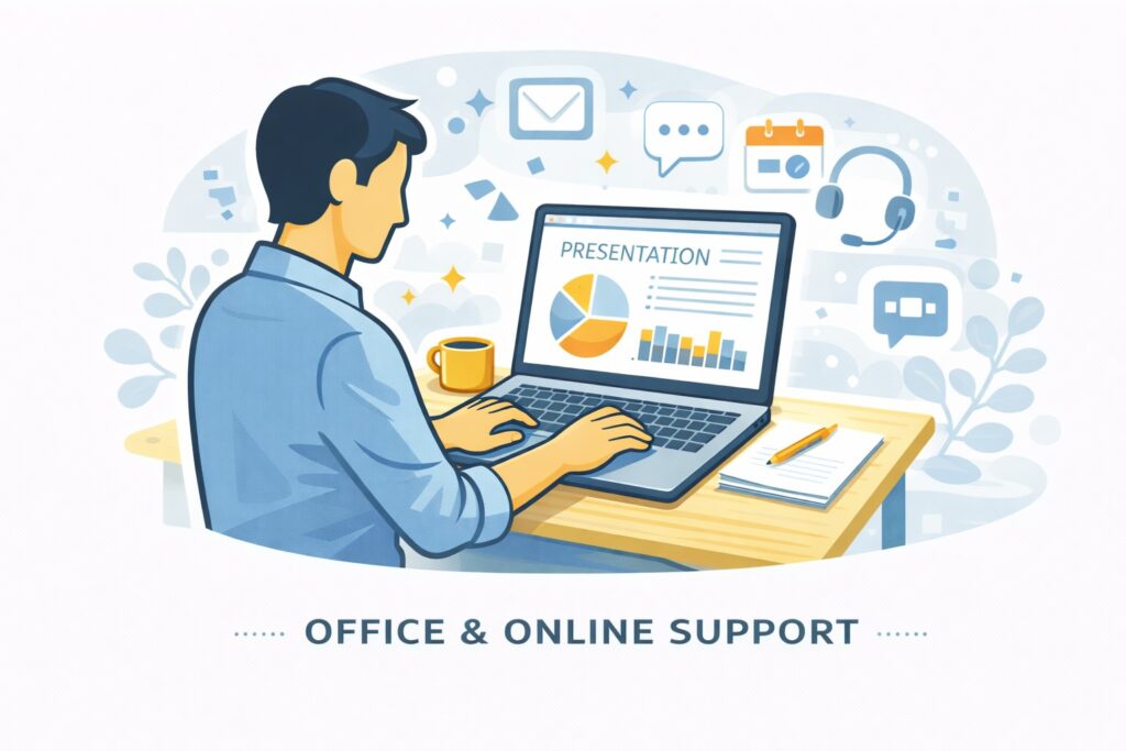 データ入力や資料作成、メール対応、スケジュール管理など、企業や個人事業主の業務をサポートする仕事です。