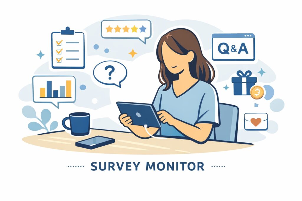 アンケートモニターとは、企業や調査会社のアンケートにスマホやパソコンで回答し、謝礼を受け取る在宅型の副業です。特別なスキルがなくても始めやすく、スキマ時間を活かしたい方に向いています。を少しでも活かしたい」という方に向いています。